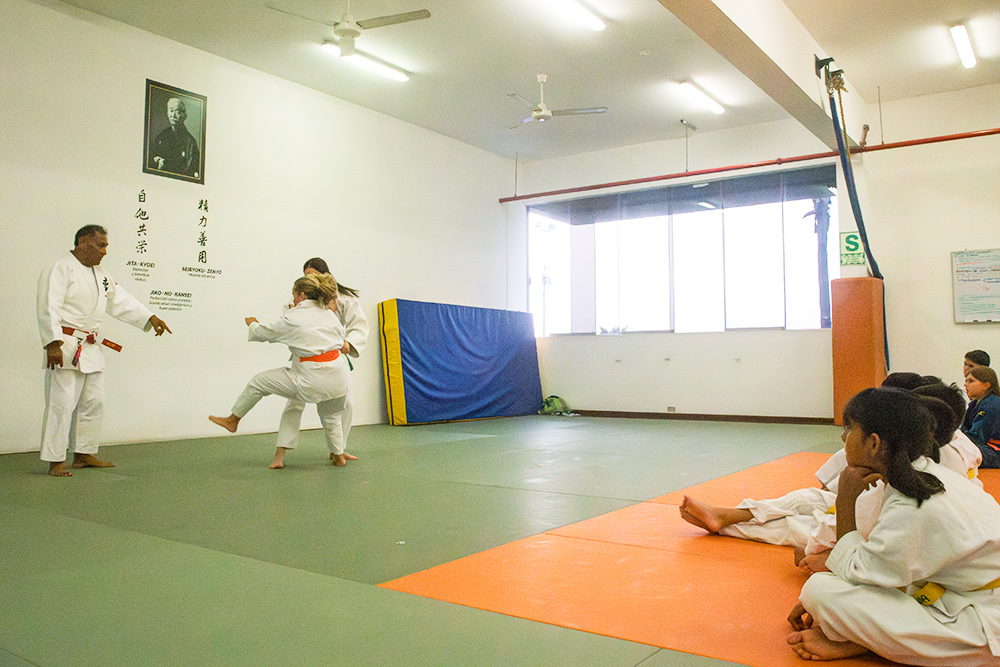 Las clases comienzan a las 5 de la tarde con un saludo al retrato del japonés Jigoro Kano, fundador de este deporte, seguido de una reverencia al sensei encargado. Este ritual de respeto es el punto de partida de cada sesión. Luego realizan ejercicios de calentamiento en torno al tatami y ejecutan las instrucciones técnicas impartidas por el sensei. Aunque a simple vista los movimientos pueden parecer complejos, el enfoque lúdico y las explicaciones claras contribuyen a que los pequeños judocas logren realizar agarres, desequilibrios y retenciones con precisión.