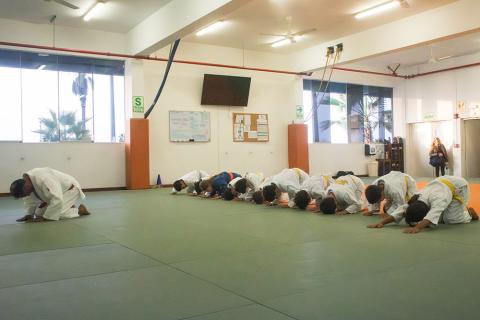 El vínculo del judo con el Club es de larga data. Se imparte en nuestra sede Chorrillos desde hace 56 años, con el objetivo de promover una disciplina que contribuye a la formación integral de quienes la practican. Actualmente, de lunes a viernes, los senseis Henry Villena y Sajiro Roca guían a los judokas celestes más pequeños. Henry está a cargo del grupo de 8 a 11 años, mientras que Sajiro entrena a los niños y niñas de 5, 6 y 7 años. Entre los alumnos encontramos cinturones blancos, amarillos y naranjas.