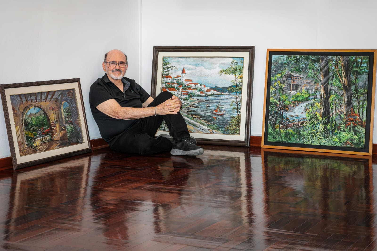 Inspirado en sus viajes y en los diversos lugares que ha conocido, en “Entre óleos y pasteles” recrea paisajes de montaña, escenas de la selva peruana y escenarios propios de la geografía europea y de otras regiones del mundo. “La mayoría son espacios nacidos de mi imaginación”, confiesa.