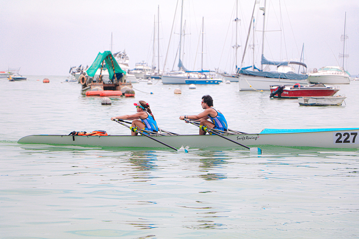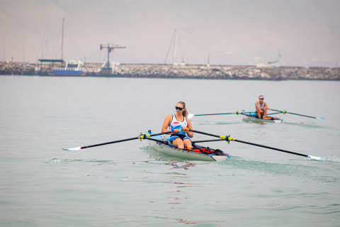 El sábado 29 de marzo, logramos una sobresaliente participación en los torneos de Coastal Endurance e Indoor Sprint, realizados en La Punta. En el primero, los bogas celestes disputaron exigentes pruebas de resistencia en el mar y consiguieron subir al podio en múltiples regatas. En los singles de la categoría Libre masculina, el oro fue para Gerónimo Hamann y el bronce para Giuseppe Brignetti, mientras que en la rama femenina el primer lugar fue para Pamela Noya, seguida de Adriana Sanguineti y Doménica Dezar. En el doble masculino Libre, en tanto, el primer puesto fue para la dupla compuesta por Gerónimo y César Cipriani; en el doble mixto, la victoria fue para el bote de Gerónimo y Pamela; y, en el cuádruple masculino, el bote ganador estuvo integrado por los celestes Javier Chion, Gaetano Tiravanti, César Cipriani y Gerónimo Hamann, con Pamela Noya como timonel.