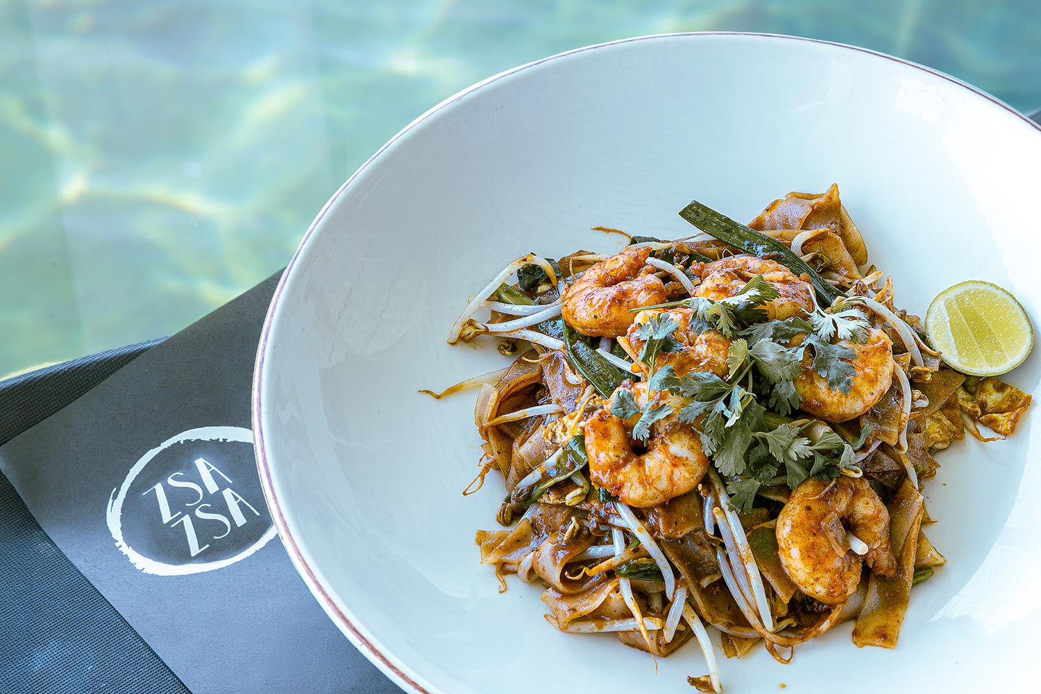 Empezamos con un con un pad thai de langostinos, un plato típico de Tailandia elaborado con fideos anchos de arroz. El color de la salsa delata que los ingredientes han sido salteados en wok, logrando un equilibrio perfecto entre lo dulce, lo salado y lo ácido. Las tiras de cebolla china y frijol chino aportan una textura crujiente que potencia la experiencia.