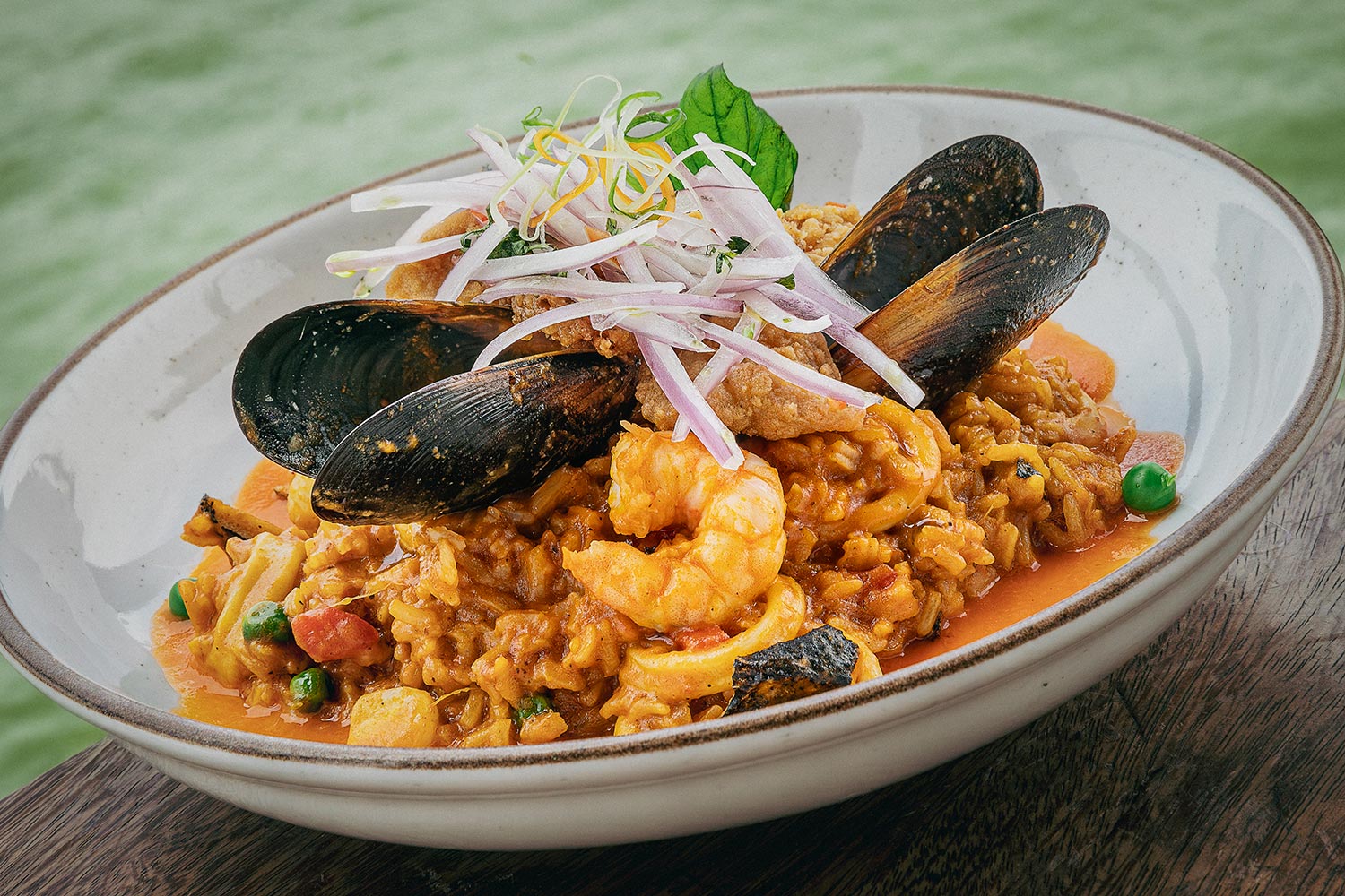 Finalmente, el restaurante nos invita a probar su arroz con mariscos. “Preparamos una base con langostinos y verduras como zanahoria, ajo y cebolla blanca, y la perfumamos con coñac. Al servir, agregamos mejillones, langostinos y calamar para dar variedad. El plato se termina con zarza criolla y crocantes de pescado y calamar”, precisa. Estamos seguros de que a más de uno ya se le abrió el apetito.