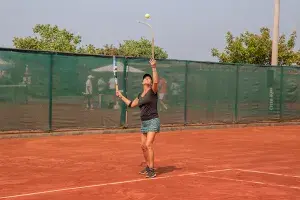 El tenis es un deporte de raqueta que se juega entre dos jugadores (singles) o entre dos parejas (dobles). El objetivo es golpear una pelota con una raqueta para que pase por encima de una red y caiga en el campo del oponente, dentro de las líneas delimitadoras. El juego se desarrolla en una cancha rectangular, dividida por una red en el centro. Los jugadores deben devolver la pelota antes de que toque el suelo en su lado de la cancha, y los partidos se dividen en juegos y sets. Ganar un número determinado de juegos en un set lleva a la victoria en el set, y ganar un número específico de sets lleva a ganar el partido.