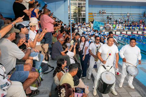 Durante la ceremonia de inauguración, desfilaron las delegaciones de todos los participantes y, como ya es tradición, el nutrido equipo de nadadores celestes hizo su aparición en medio de aplausos, cánticos e instrumentos musicales. Posteriormente se entonaron los himnos del Perú y del Club de Regatas “Lima”, y se llevó a cabo el tradicional juramento de honor de los deportistas, que estuvo a cargo de nuestra atleta Micaela Bernales.