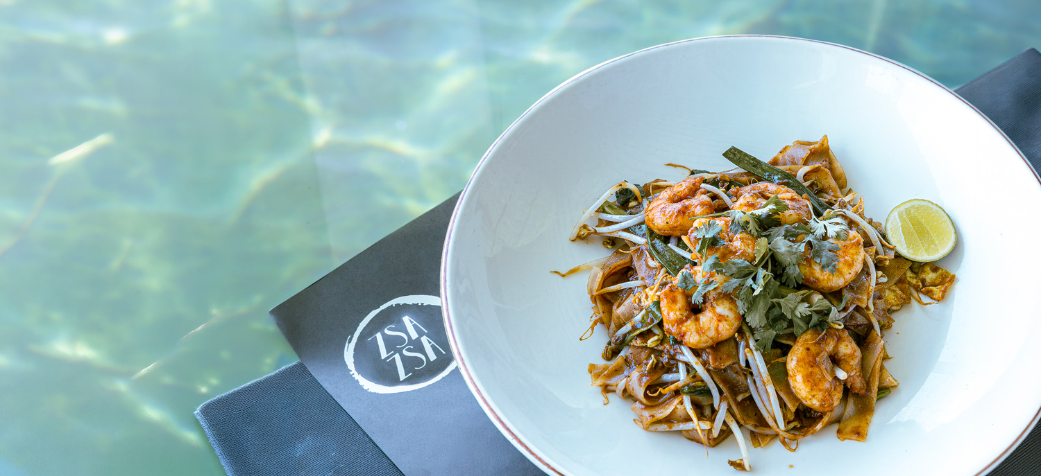 Empezamos con un con un pad thai de langostinos, un plato típico de Tailandia elaborado con fideos anchos de arroz. El color de la salsa delata que los ingredientes han sido salteados en wok, logrando un equilibrio perfecto entre lo dulce, lo salado y lo ácido. Las tiras de cebolla china y frijol chino aportan una textura crujiente que potencia la experiencia.
